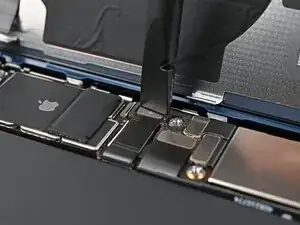 Используйте отвёртку Tri-point Y000, чтобы установить два винта длиной 1,3 мм, фиксирующих нижнюю крышку разъёма.