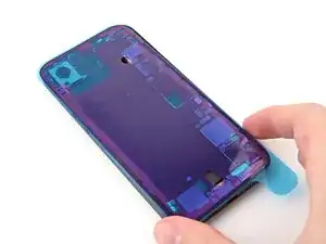 Удерживайте заднее стекло над телефоном и совместите его с рамкой.