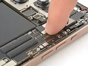 Используйте палец или лопатку, чтобы нажать и подключить два разъёма камеры к плате.
