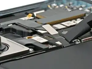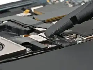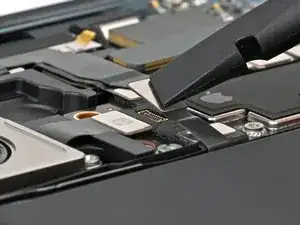 Используйте палец или лопатку, чтобы подключить два разъема задней камеры, расположенные в нижнем левом углу логической платы.