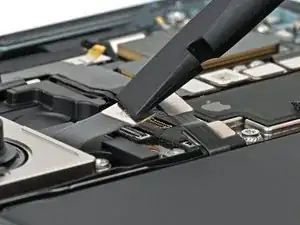 Используйте палец или лопатку, чтобы подключить разъем кнопки питания/управления камерой.