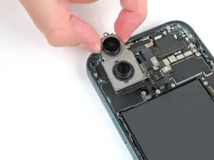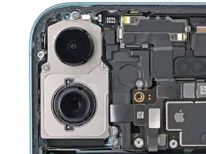 Шаги по сборке задних камер в iPhone 16 Plus.