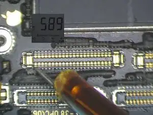 Проверьте цепи, связанные с динамиком, на разъёме порта зарядки. Выключите телефон. Отсоедините материнскую плату. Измерьте в диодном режиме контакты 1, 3, 5 и 45 на разъёме J6400. Значения диодов находятся в норме.