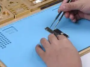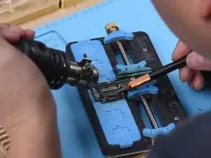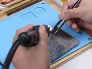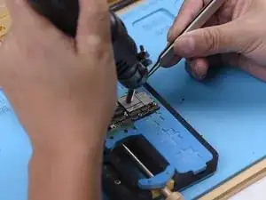 Затем нагрейте феном при 340℃, поток воздуха 5. Аккуратно подденьте NAND‑чип.