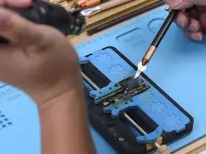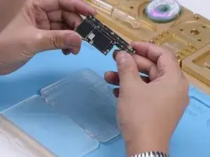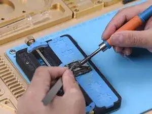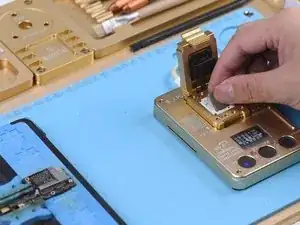 Установите новый NAND‑чип в нужное положение. Припаяйте феном при 330℃, поток воздуха 4.