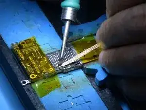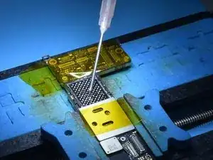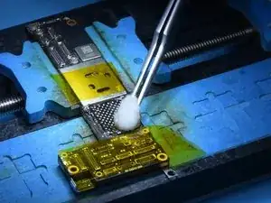 Нанесите флюс в пасте на посадочную площадку и установите NAND iPhone 12 256 ГБ на место.