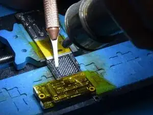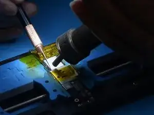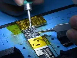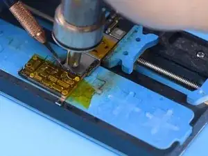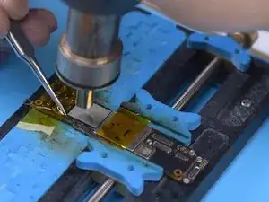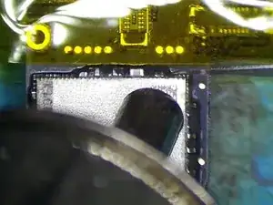 Нагрейте NAND феном для пайки при 385℃ и скорости потока воздуха 45. Подденьте NAND лезвием для поддёма.