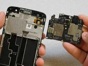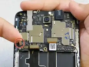 Чтобы отсоединить чипсет и добраться до задней камеры, найдите и отключите пять разъёмов питания вокруг верхнего чипсета (как показано на изображениях).