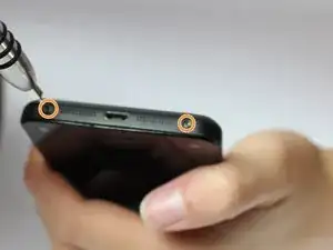 Удалите два винта по 4 мм на нижней части телефона с помощью отвертки Torx T3.