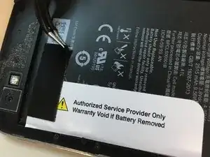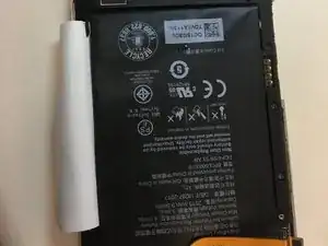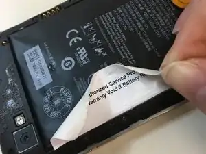 Осторожно нагрейте стикеры, закрывающие аккумулятор, и аккуратно отогните их. Белый стикер соединён с клеем, находящимся под аккумулятором.