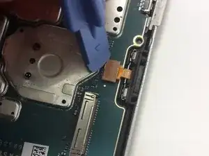 Пластиковым инструментом отвяжите системную плату, отключив подключённые к ней шлейфы
