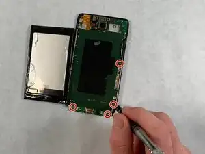 Удалите четыре винта T5 Torx, фиксирующие плату.