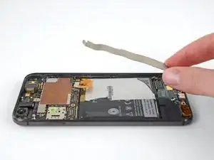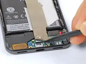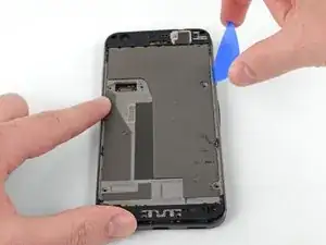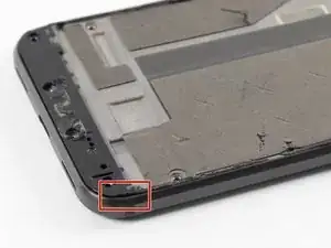 Пока не пытайтесь снять среднюю рамку! Под ней всё ещё находится хрупкий шлейф, соединяющий динамик, установленный рядом с ухом, с материнской платой.