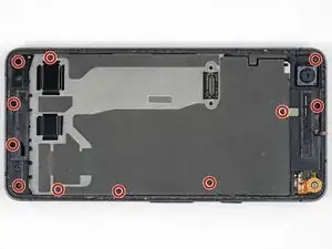 Удалите следующие винты, фиксирующие среднюю рамку: