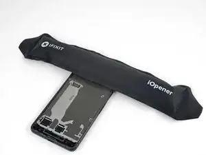 Приложите нагретый iOpener к датчику приближения на верхней кромке средней рамки на две минуты, чтобы размягчить клей.
