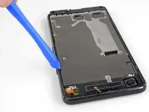 Подденьте среднюю рамку достаточно, чтобы образовался зазор между ней и корпусом телефона. Средняя рамка пока не готова к полному снятию.