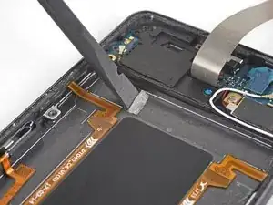 Используйте наконечник лопатки, чтобы приподнять разъём шлейфа дисплея вверх и вынуть его из гнезда на плате.