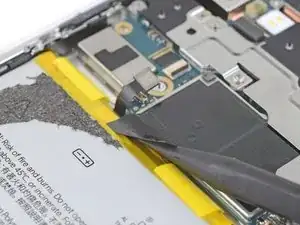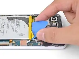 Будьте осторожны при работе вдоль левого края телефона. Если медиатор застрял около верхней части, возможно, вы зацепили кабель датчика отпечатков. Немного оттяните медиатор из шва и попробуйте снова.