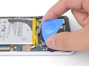 Используйте наконечник лопатки, чтобы поддеть и отсоединить разъём индукционной катушки зарядки от платы вблизи правого края телефона.