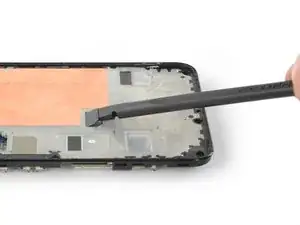 Вставьте другую монтажную лопатку в верхний край телефона под углом в том месте, где уже образовался зазор, чтобы не повредить OLED-панель.