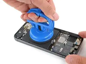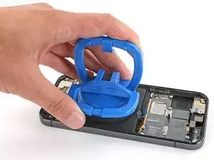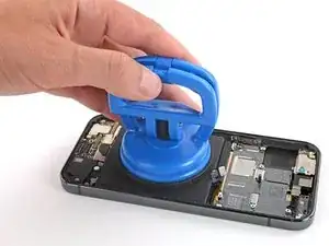Поддержите заднюю крышку с помощью присоски, чтобы получить доступ к шлейфу в верхнем правом углу.