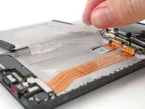 Снимите прозрачную подложку с нового клеевого слоя для аккумулятора.