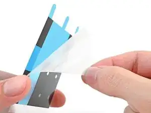 Совместите новый клей для аккумулятора с рамкой, убедившись, что три клеевые полосы правильно перекрываются.