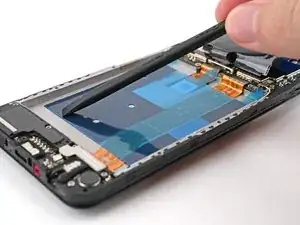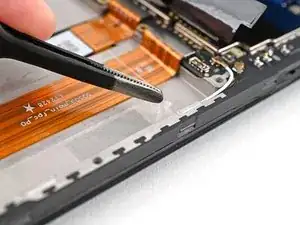 Используйте лопатку, чтобы поддеть и отключить нажимной разъём кнопки питания.