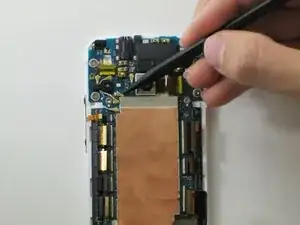 Отверткой Phillips #00 отвинтите два винта 1 мм в нижнем правом углу платы, которые удерживают разъём питания.