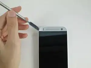 Используйте пластиковый инструмент для поддевания, чтобы пройти вокруг кромки телефона.
