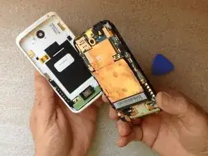 Видеоинструкция посвящена замене ЖК-дисплея и сенсорного экрана, но Вы можете следовать ей до момента, когда основная плата и аккумулятор отделяются от рамы дисплея.