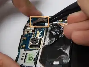 Используйте пинцет, чтобы отключить шлейф кнопки питания.