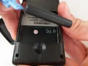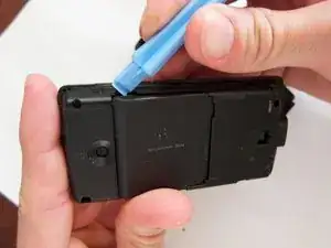 Используя палец или в данном случае пластиковый рычаг, приложите давление к этому месту и потяните аккумулятор к себе.