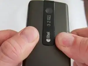 Используя остальные восемь пальцев для удержания телефона, разместите каждый большой палец с каждой стороны символа "Alltell".