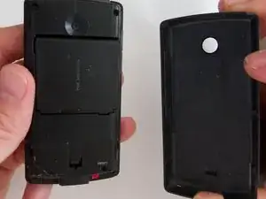Чтобы снять аккумулятор, крепко держите телефон в одной руке.