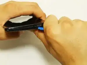Поместите плоский конец инструмента немного внутрь зарядного порта и положите большой палец на заднюю сторону телефона.