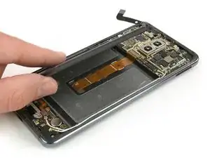 Используйте пинцет, чтобы удалить металлический экран, закрывающий разъем датчика отпечатков пальцев.