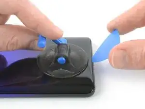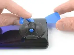 Если заднее стекло телефона треснуло, присоска может не держаться. Попробуйте поднять крышку с помощью прочной ленты или приклейте присоску суперклеем и дайте высохнуть, чтобы продолжить.