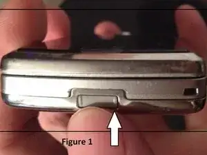 Чтобы снять заднюю крышку, используйте большой или указательный палец, чтобы надавить на верхнюю часть устройства. Обратитесь к изображению с подписью "Рисунок 1", чтобы найти место, куда нужно надавить. После нажатия на эту "кнопку" задняя крышка легко снимется. Будьте осторожны при снятии детали, так как с другой стороны металлического корпуса она может быть острой.