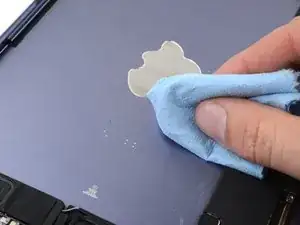 Удалите оставшиеся следы клея с рамы, используя несколько капель высококонцентрированного изопропилового спирта (свыше 90%) и безворсовую или микрофибровую ткань.