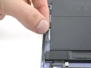 Поднимите элементы батареи от рамы, чтобы получить доступ к левому краю платы аккумулятора.
