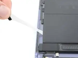 Не прокалывайте и не сгибайте батарею. Если она кажется застрявшей, нанесите больше изопропилового спирта или приложите нагретый iOpener к задней части рамы, чтобы дополнительно размягчить клей.