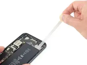 Используйте лопатку, чтобы отсоединить гибкий кабель Taptic-двигателя, поддев его строго вверх от разъема.
