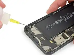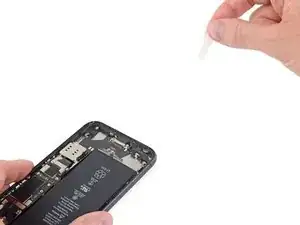 Если какие‑то клеевые полоски сломались и аккумулятор остался приклеенным к задней части корпуса, удалите его, капнув несколько капель изопропилового спирта (90% или выше) под аккумулятор рядом с прикипевшими полосками.