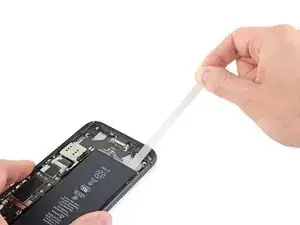 Вдоль правого края iPhone проходят тонкие кабели. Не вставляйте медиатор здесь, чтобы не повредить кабели.