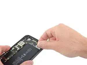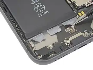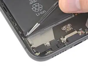 Поднимите и отодвиньте маленькую плату, закрывающую оставшийся винт динамика в нижнем правом углу iPhone.