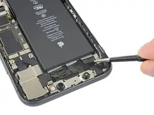 Перед установкой нового аккумулятора вновь установите тактильный мотор и динамик. Это поможет правильно выровнять аккумулятор при установке.