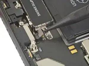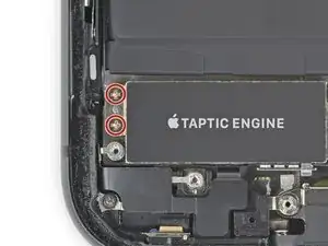Используя крестовую отвертку, удалите два винта 1,8 мм, крепящие Taptic-двигатель.
