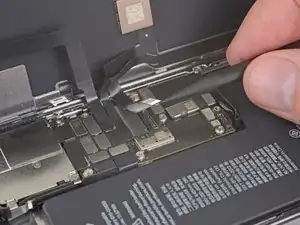 Используйте лопатку или чистый ноготь, чтобы приподнять разъём питания аккумулятора от его гнезда на плате.