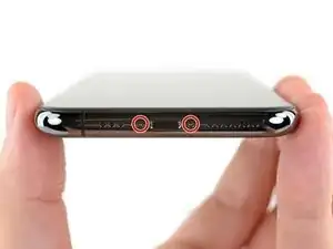 Открытие дисплея нарушит водонепроницаемые уплотнения iPhone. Подготовьте запасные уплотнения до перехода к следующему шагу или будьте осторожны с попаданием жидкости, если собираетесь собрать iPhone без замены уплотнений.